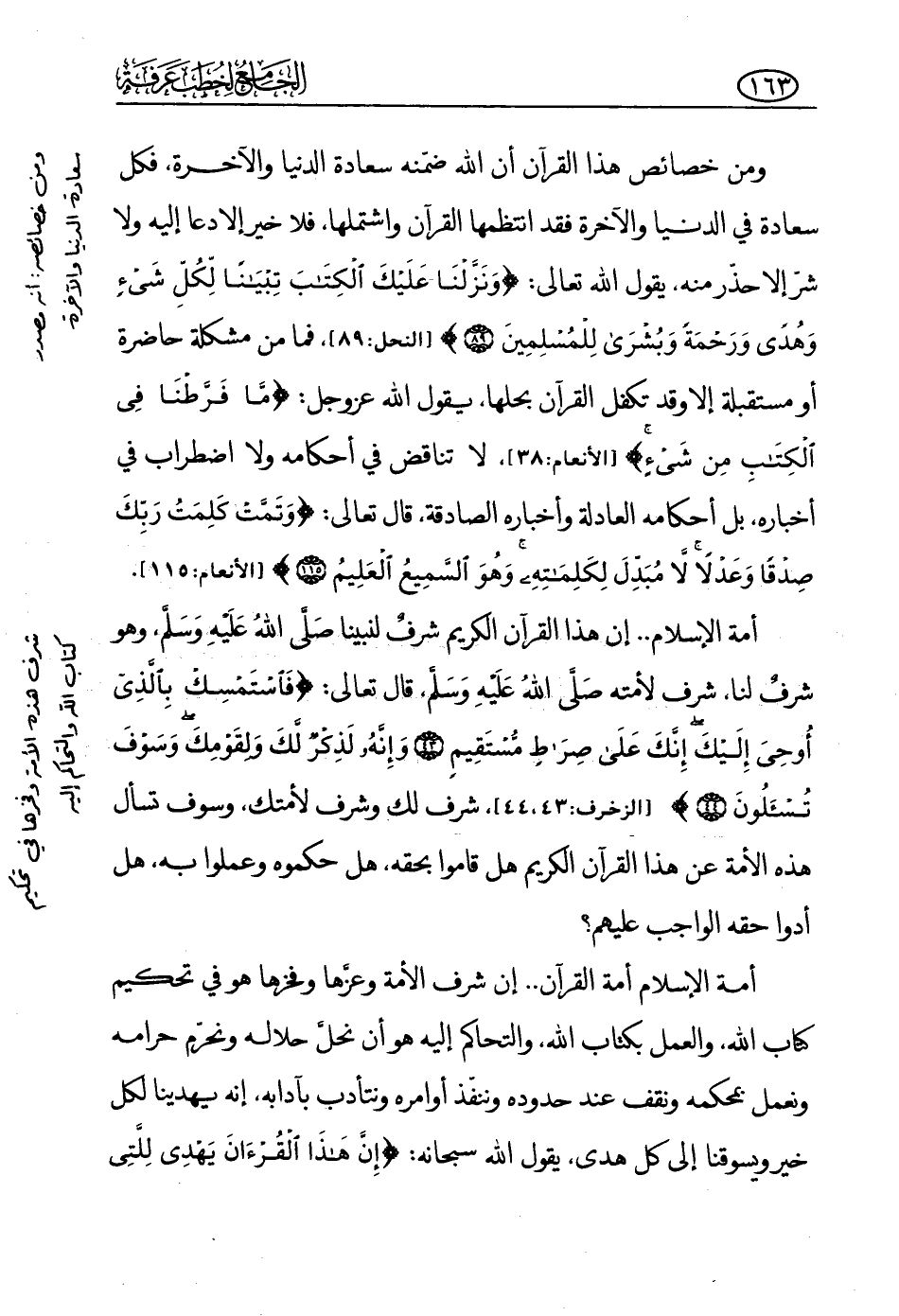 “ شرف هذه الأمة وفخرها في تحكيم كتاب الله والتحاكم إليه “