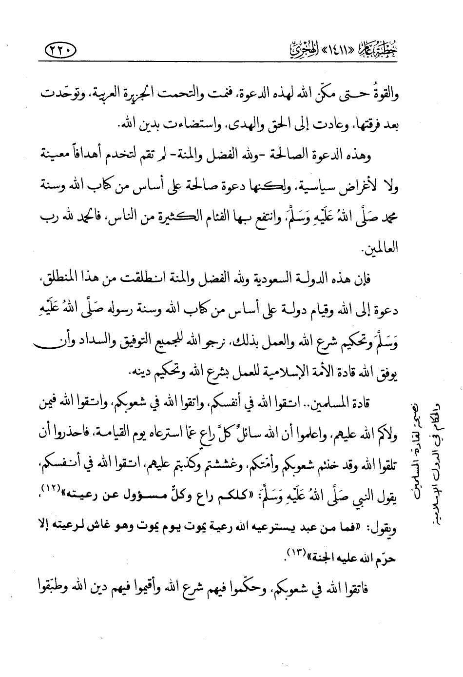 فاتقوا الله في شعوبكم، وحكموا فيهم شرع الله، وأقيموا فيهم دين الله، وطبقوا