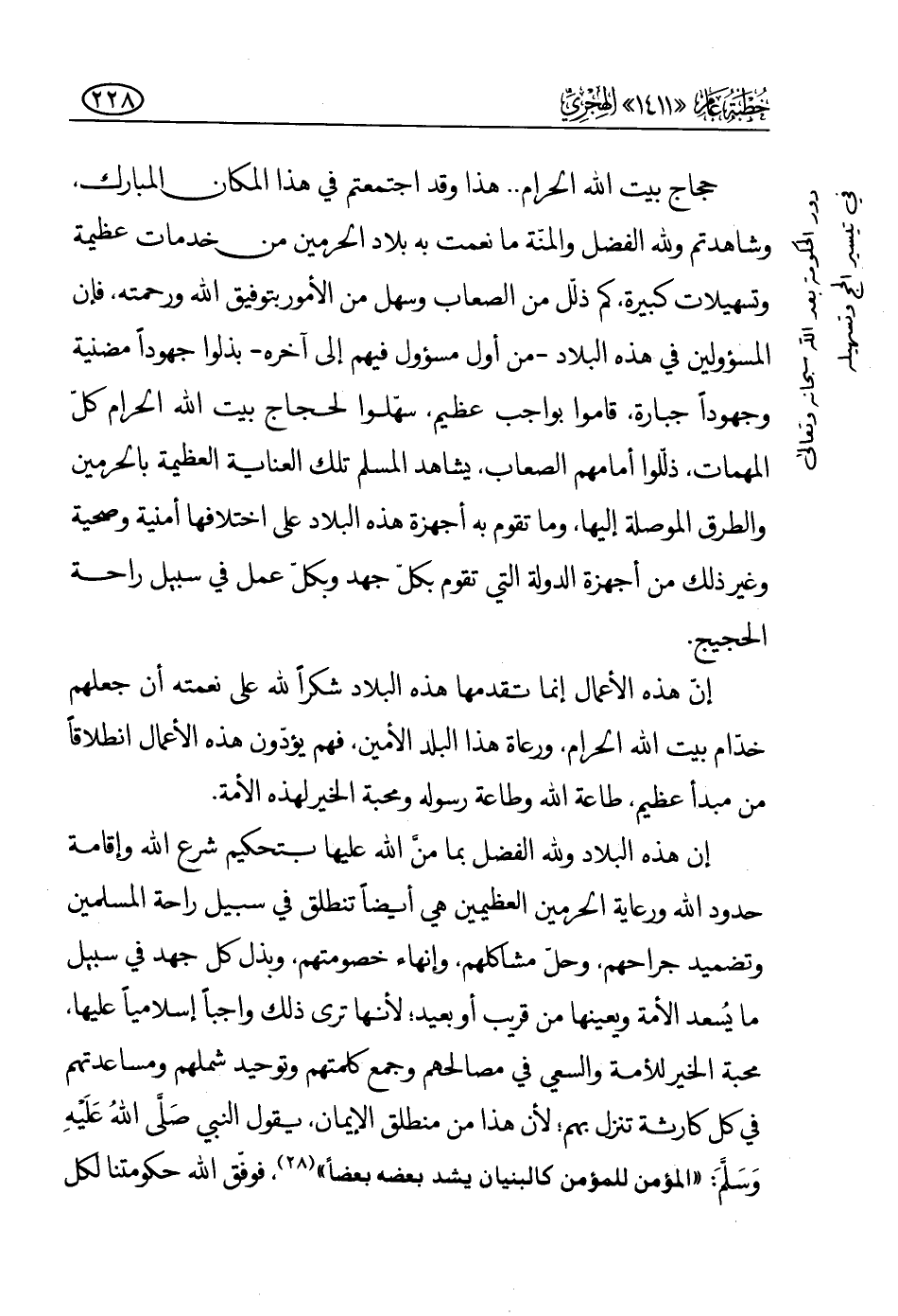 (¬1) أخرجه البخاري ومسلم في صحيحيهما، وسبق تخريجه في خطبة عام (1404) ، الهامش (3)