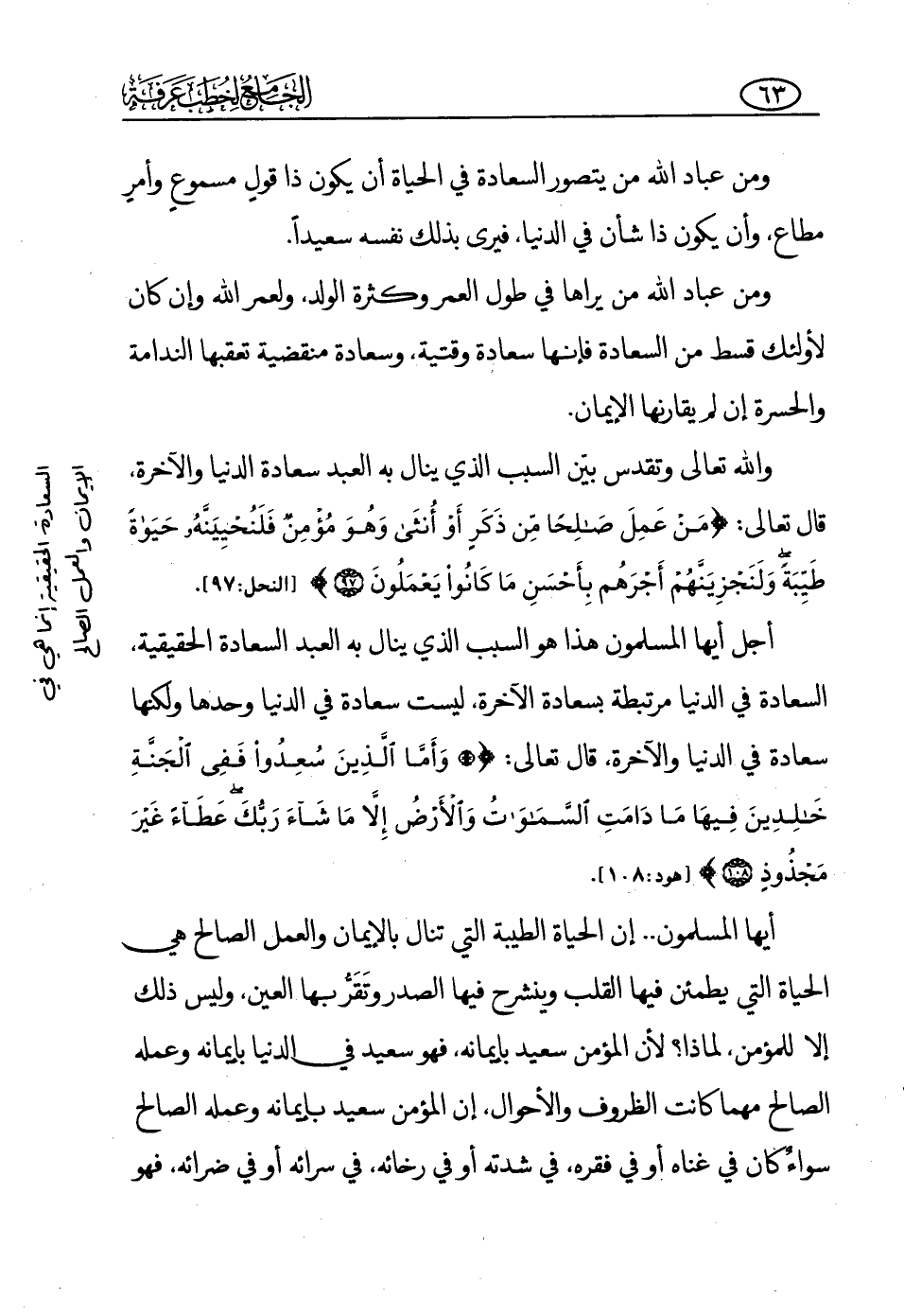 [السعادة الحقيقية إنما هي في الإيمان والعمل الصالح]