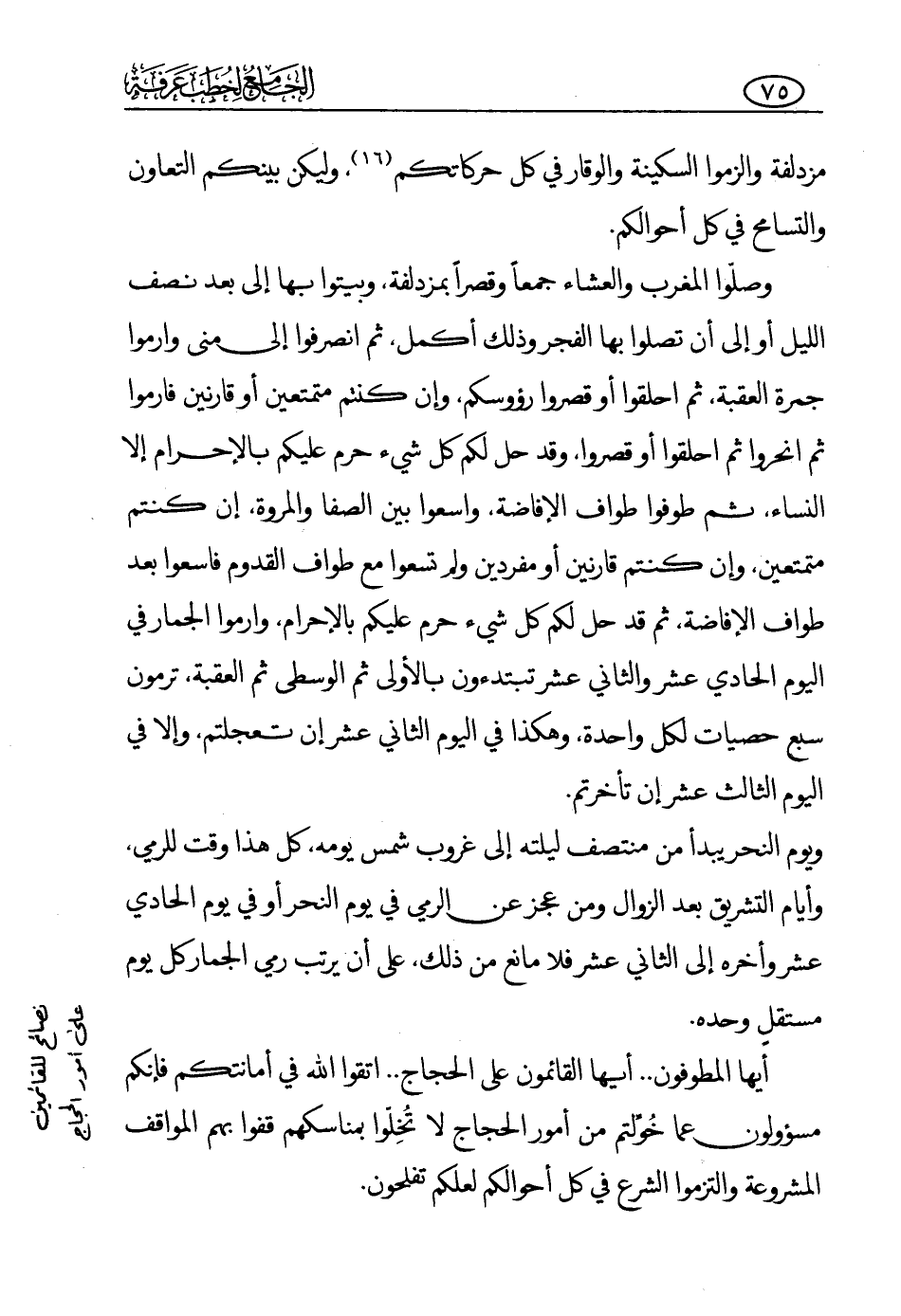 مزدلفة، والزموا السكينة والوقار في كل حركاتكم وليكن بينكم التعاون والتسامح في كل أحوالكم.