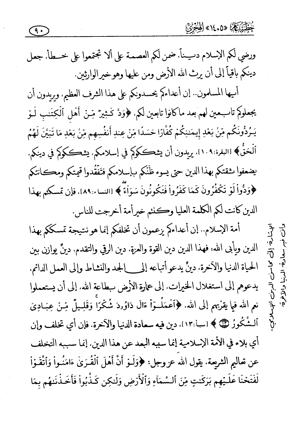 ورضي لكم الإسلام دينا، ضمن لكم العصمة على أن لا تجتمعوا على خطأ، جعل دينكم باقيا إلى أن يرث الله الأرض ومن عليها وهو خير الوارثين.