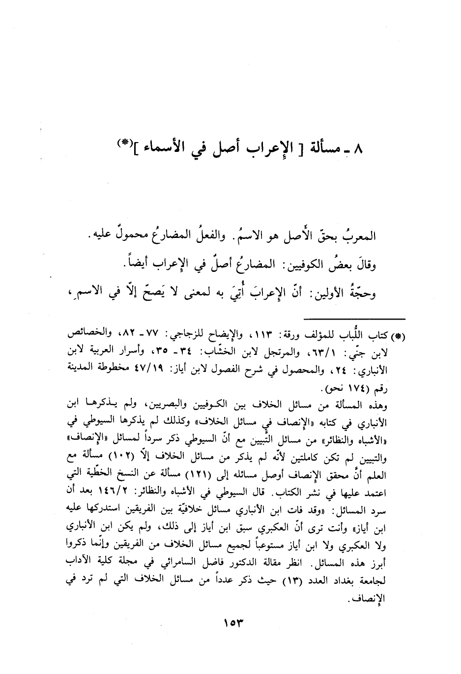 8 - مسألة [الإعراب أصل في الأسماء]