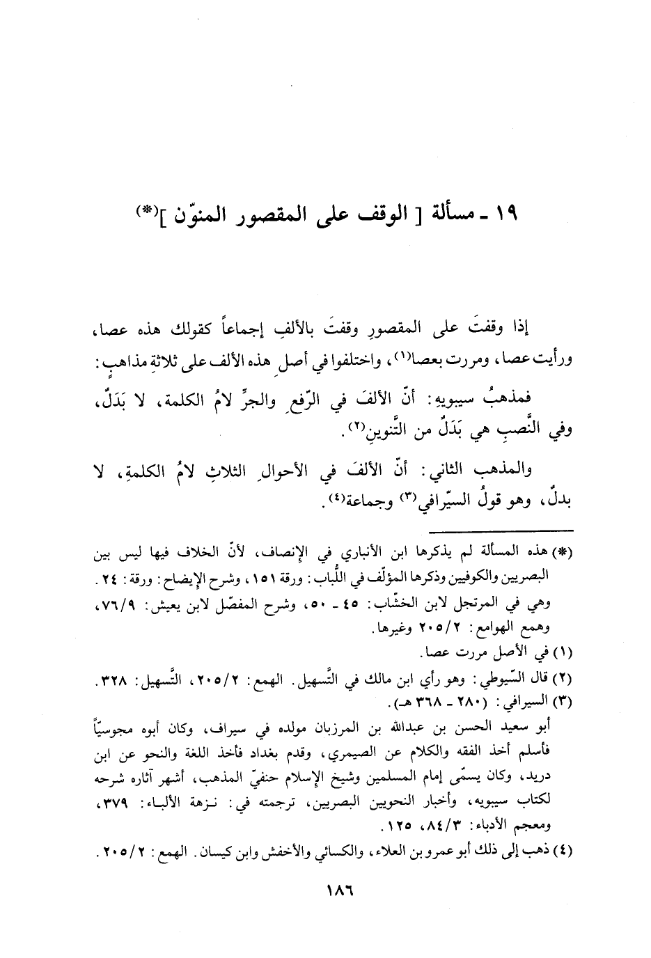والمذهب الثاني: أنّ الألفَ في الأحوالِ الثلاثِ لامُ الكلمةِ، لا بدلٌ، وهو قولُ السيّرافي وجماعة.
