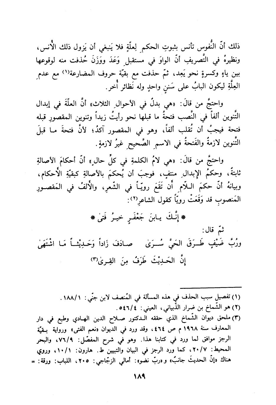 واحتجَّ من قالَ: ((هي لامُ الكلمةِ في كلِّ حالٍ)) أنّ أحكامَ الأصالةِ ثابتةٌ، وحكمُ الإبدالِ منتفٍ، فوجبَ أن يُحكمَ بالأصالةِ كبقيّةِ الأَحكام، وبيانهُ أنّ حكمَ اللاّمِ أَن تَقَعَ رويّاً في الشّعرِ، والأَلفُ في المَقصورِ المَنصوبِ قد وَقَعَتْ رويّاً كقول الشاعرِ: