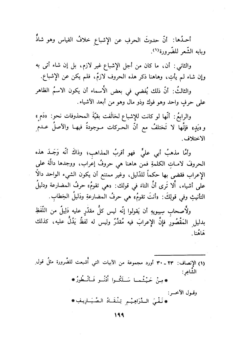 أحدُها: أنّ حدوثَ الحرفِ عن الإِشباعِ خلافُ القياس وهو شاذٌّ وبابه الشّعر للضّرورة.