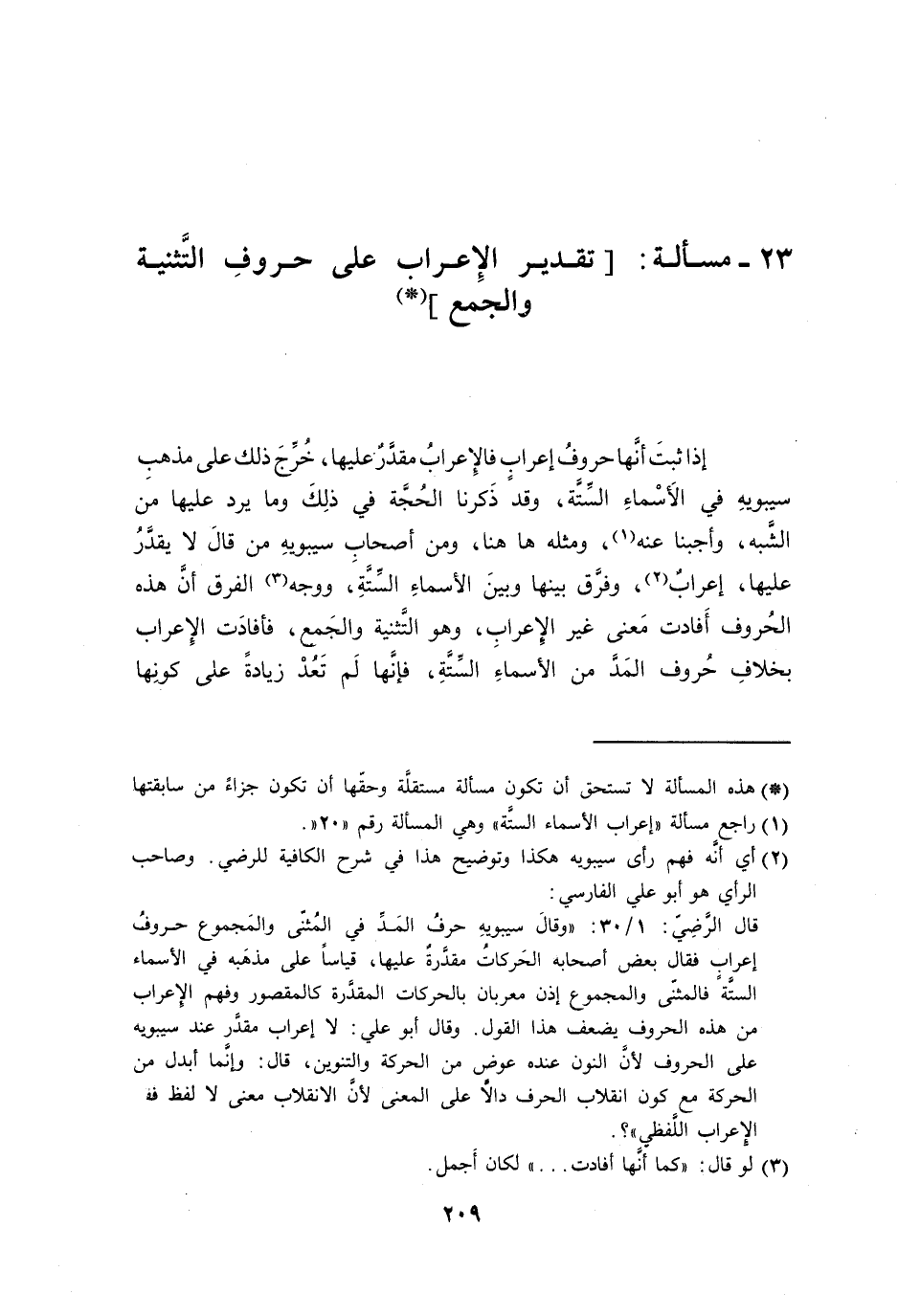 23 - مسألة: [تقدير الإِعراب على حروفِ التَّثنية والجمع]