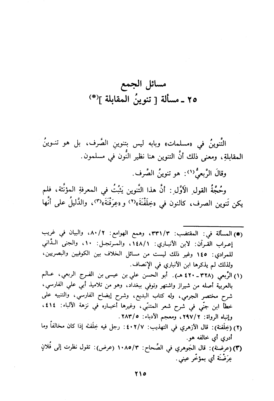 25 - مسألة [تنوينُ المقابلة]