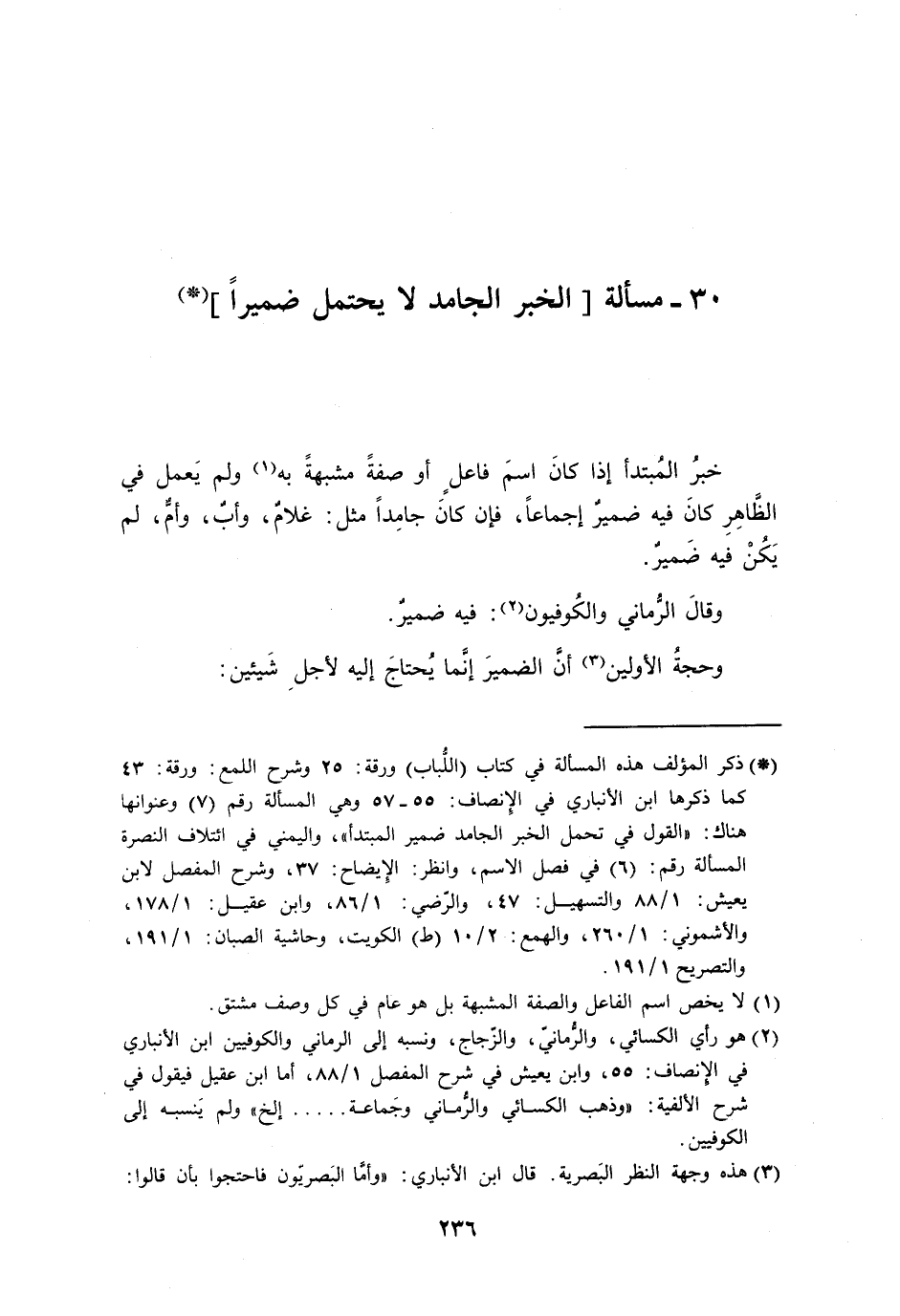 30 - مسألة [الخبر الجامد لا يحتمل ضميراً]