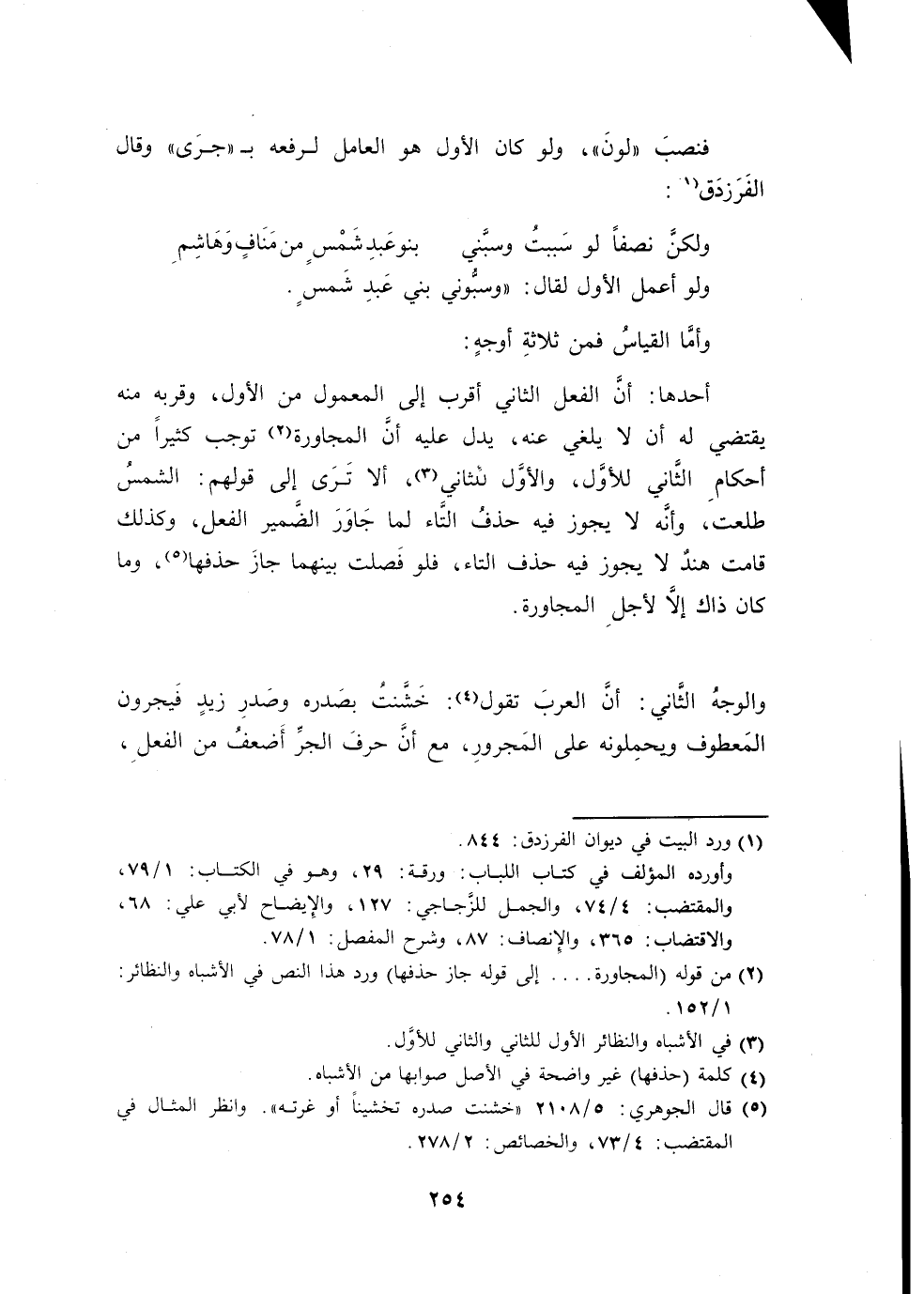 والوجهُ الثَّاني: أنَّ العربَ تقول: خَشَّنتُ بَصدره وصَدرِ زيدٍ فَيجرون المَعطوف ويحمِلونه على المَجرورِ، مع أنَّ حرفَ الجرِّ أَضعفُ من الفعلِ،