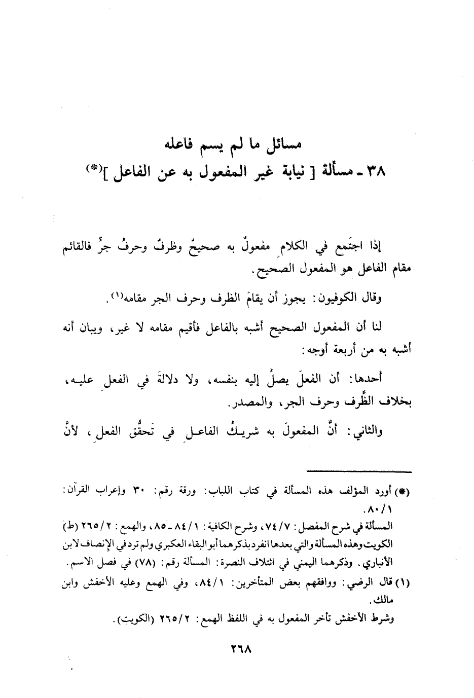 38 - مسألة [نيابة غير المفعول به عن الفاعل]