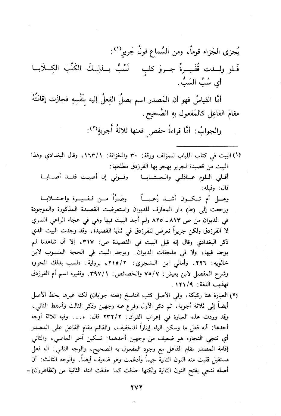 يُجزى الجَزاء قوماً، ومن السَّماع قولُ جَريرٍ: