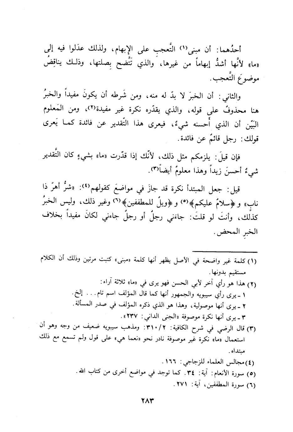 والثاني: أن الخبرَ لابدّ له منه، ومن شَرطه أن يكونَ مفيداً والخبرُ هنا محذوفٌ على قوله، والذي يقدّره نكرة غير مفيدة، ومن المَعلوم البَيّن أن الذي أَحسنه شيءٌ، فيعرى هذا التّقدير عن فائدة كما يَعرى قولك: رجل قائمٌ عن فائدة.