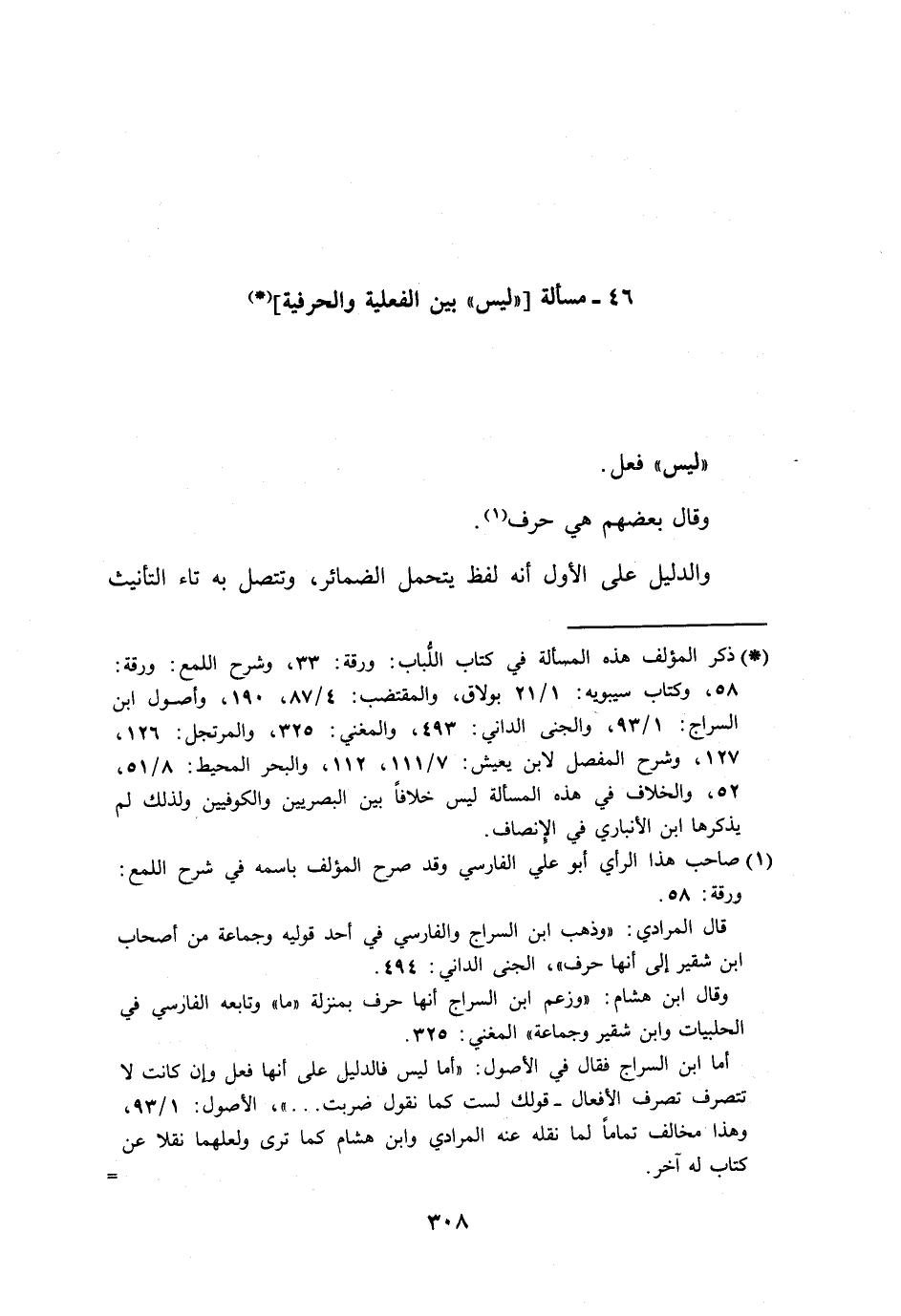46 - مسألة [(ليس) بين الفعلية والحرفية]