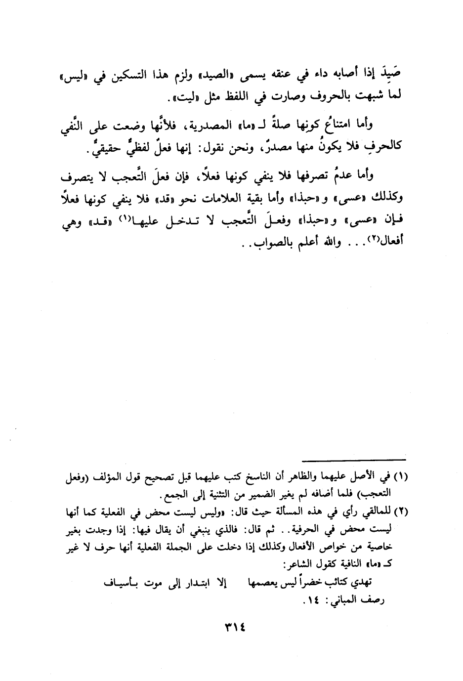وأما امتناعُ كونِها صلةً ل ((ما)) المصدرية، فلأنَّها وضعت على النَّفي كالحرفِ فلا يكونُ منها مصدرٌ، ونحن نقول: إنها فعلٌ لفظيٌّ حقيقيٌّ.