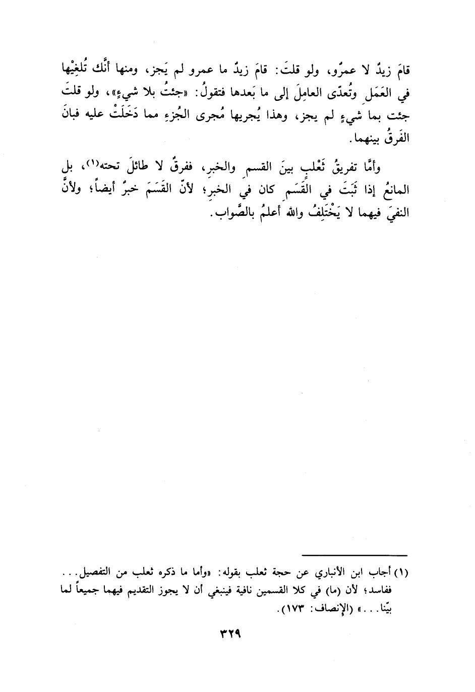 وأمَّا تفريقُ ثَعْلبٍ بينَ القسمِ والخبرِ، ففرقٌ لا طائلَ تحته، بل المانعُ إذا ثَبَتَ في القَسَمِ كان في الخبرِ؛ لأنّ القَسَمَ خبرٌ أيضاً؛ ولأنَّ النفيَ فيهما لا يَخْتَلِفُ والله أعلمُ بالصَّواب.