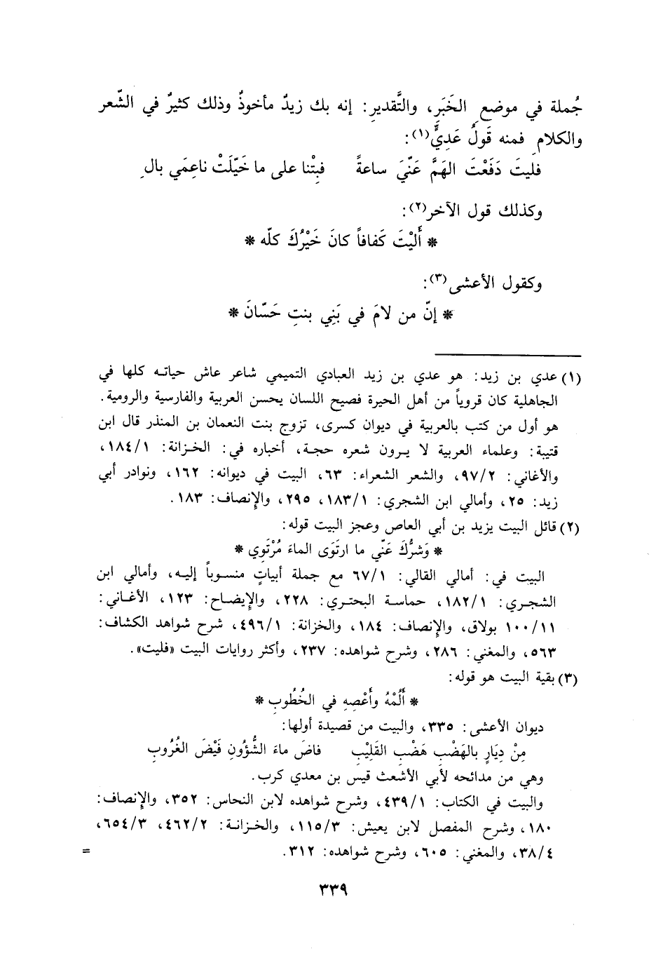 جُملة في موضعِ الخَبَرِ، والتَّقديرِ: إنه بك زيدٌ مأخوذٌ وذلك كثيرٌ في الشّعر والكلامِ فمنه قَولُ عَدِيٍّ: