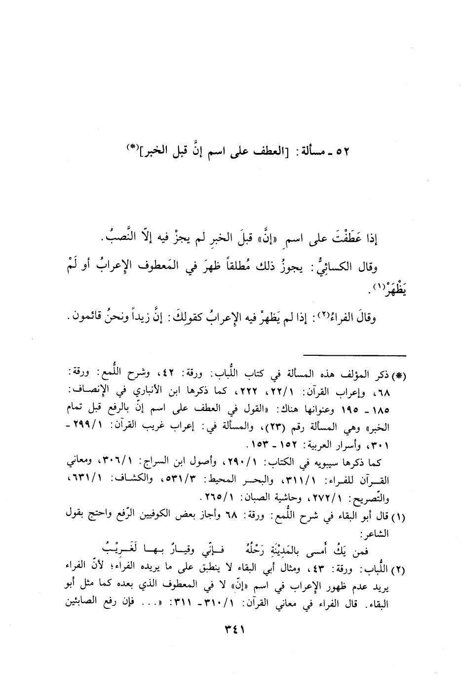 52 - مسألة [العطف على اسم إنَّ قبل الخبر]