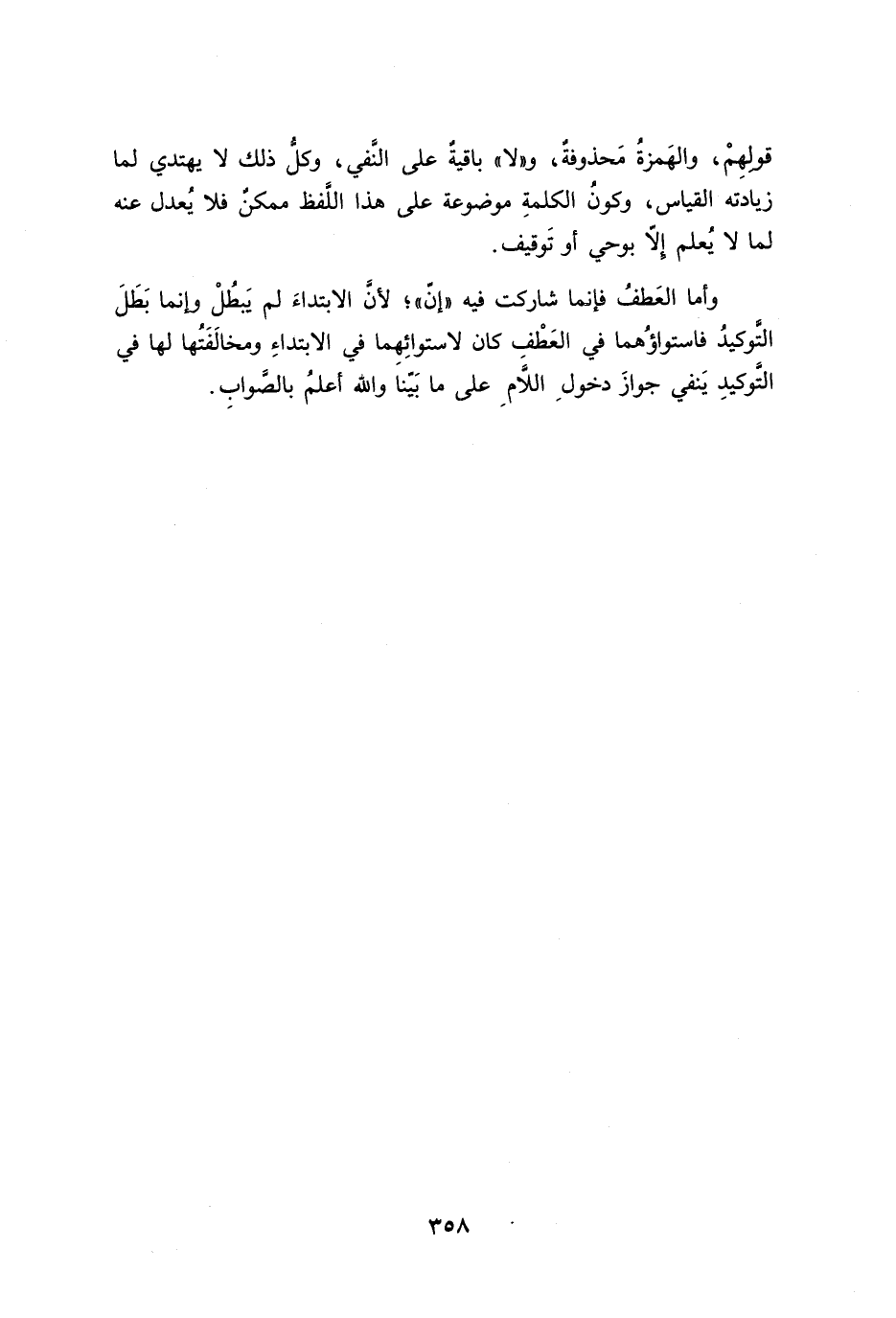 وأما العَطفُ فإنما شاركت فيه ((إنّ))؛ لأنَّ الابتداءَ لم يَبطُلْ وإنما بَطَلَ التَّوكيدُ فاستواؤُهما في العَطْفِ كان لاستوائِهِما في الابتداءِ ومخالَفَتُها لها في التَّوكيدِ يَنفي جوازَ دخولِ اللاَّمِ على ما بَيّنا والله أعلمُ بالصَّوابِ.