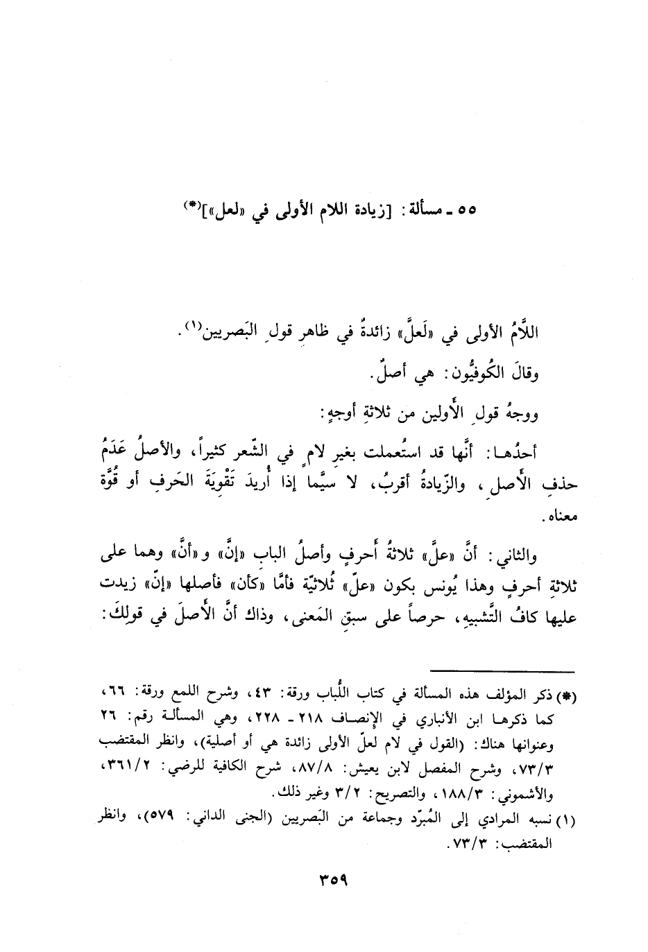 55 - مسألة [زيادة اللام الأولى في (لعل)]