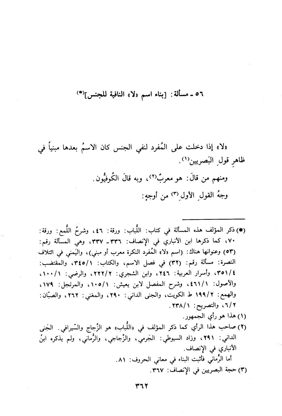 56 - مسألة: [بناء اسم (لا) النافية للجنس]