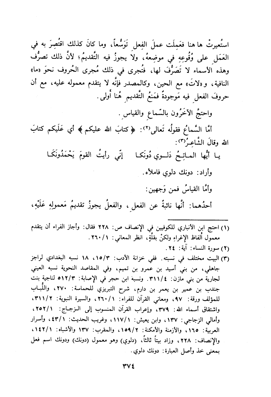 أمّا السَّماعُ فقولُه تَعالى: {كتابَ الله عليكم} أي عَلَيكم كتابَ الله وقالَ الشَّاعِرُ: