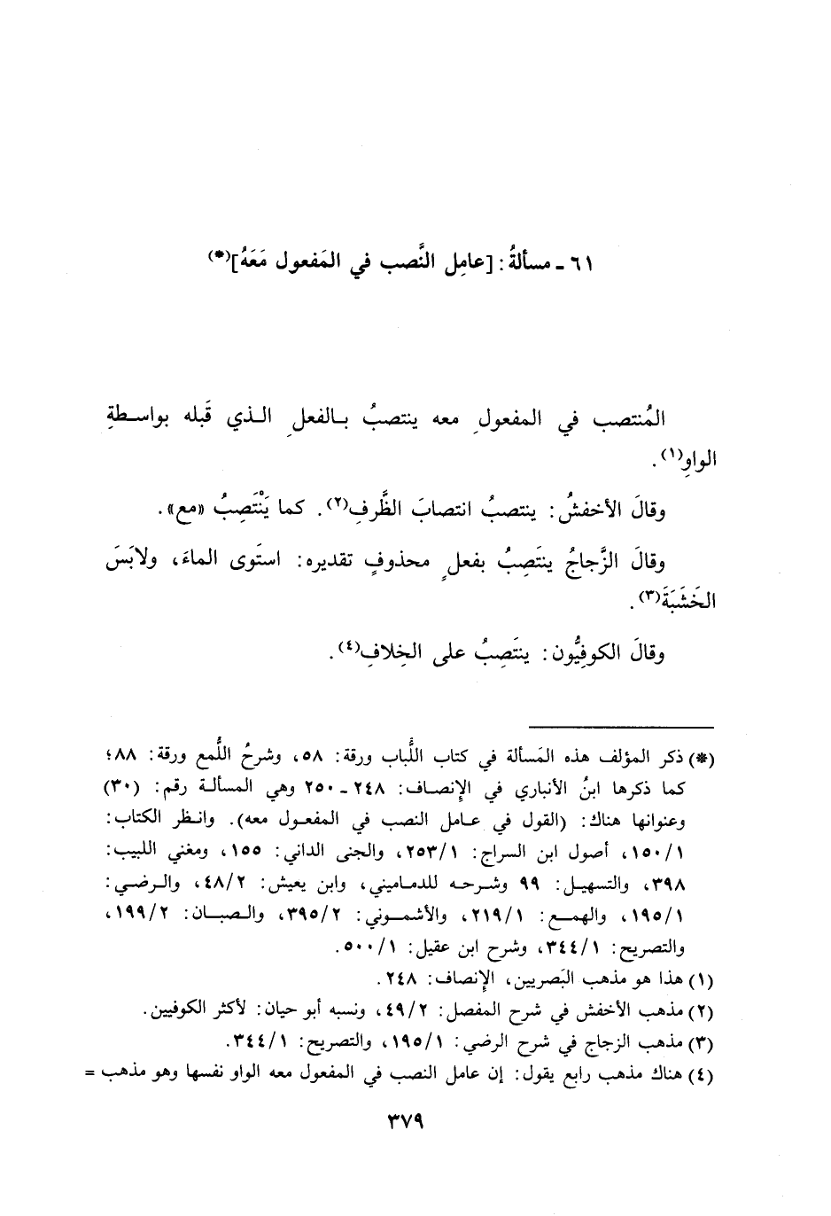 61 - مسألةُ: [عامِل النَّصب في المَفعول مَعَهُ]