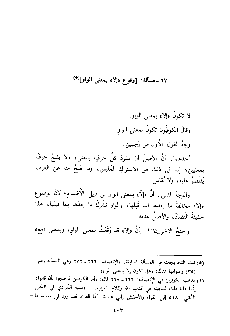 67 - مسألة: [وقوع (إلا) بمعنى الواو]