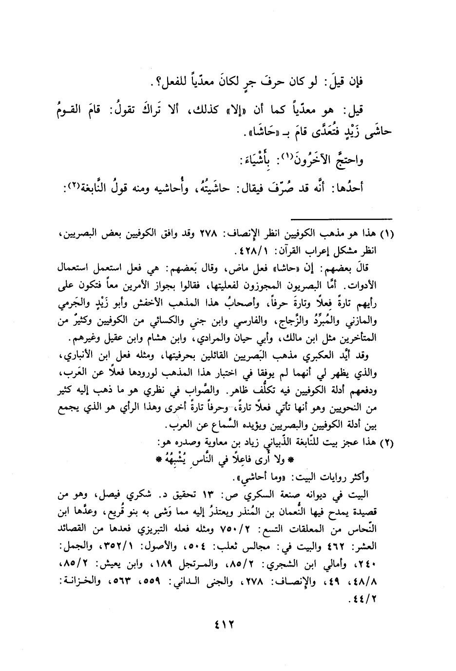 أحدُها: أنَّه قد صُرّفَ فيقال: حاشَيتُهُ، وأُحاشيه ومنه قولُ النَّابغة: