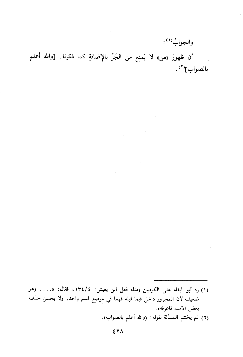 أن ظهورَ ((من)) لا يَمنع من الجَرّ بالإِضافةِ كما ذكرنا. [والله أعلم بالصواب].