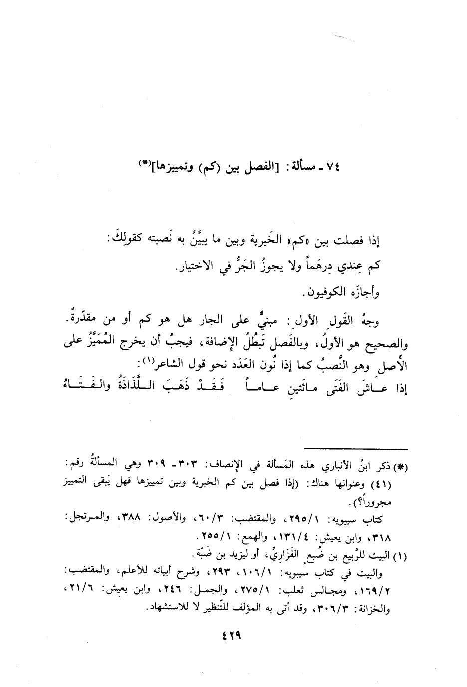 74 - مسألة: [الفصل بين (كم) وتمييزها]