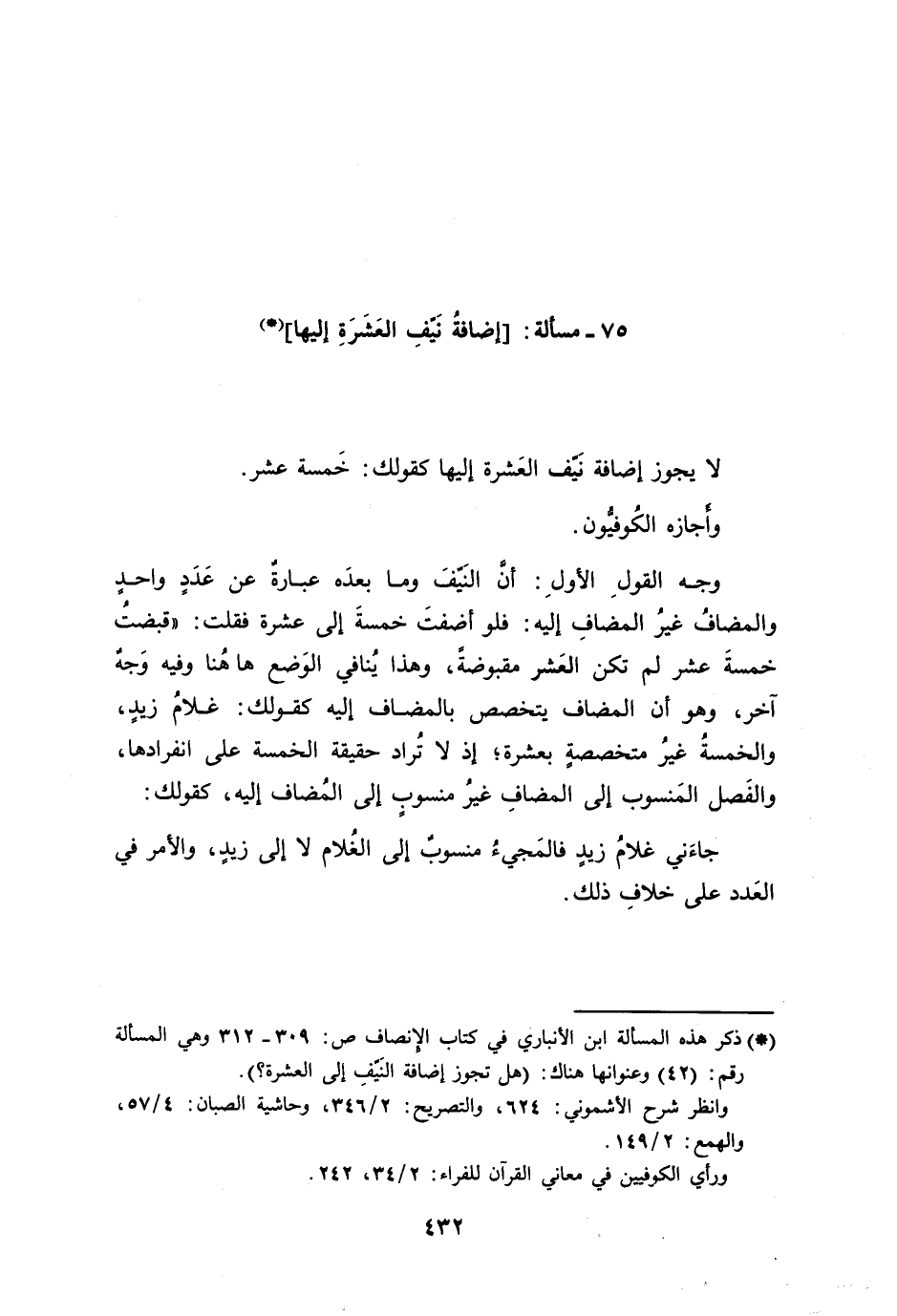 75 - مسألة: [إضافةُ نَيّفِ العَشَرَةِ إليها]