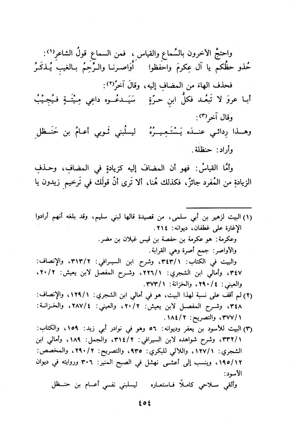 واحتجَّ الآخرون بالسَّماعِ والقياسِ، فمن السماعِ قولُ الشاعرِ: