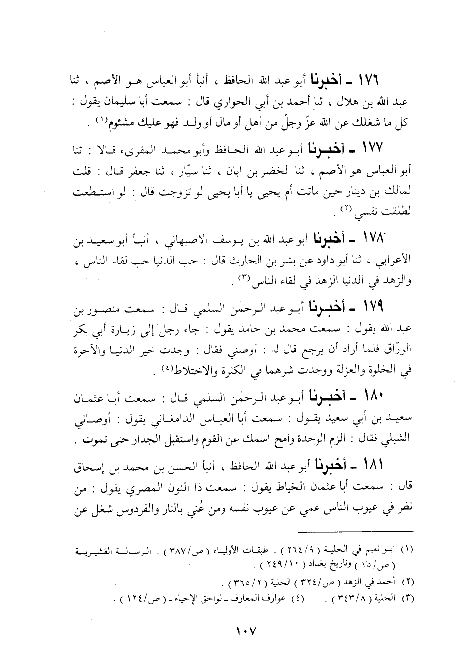 178 - أَخْبَرَنَا أَبُو عَبْدِ اللَّهِ بْنُ يُوسُفَ الْأَصْبَهَانِيُّ، أَنْبَأَنَا أَبُو سَعِيدِ بْنُ الْأَعْرَابِيِّ، حَدَّثَنَا أَبُو دَاوُدَ، عَنْ بِشْرِ بْنِ الْحَارِثِ قَالَ: «§حُبُّ الدُّنْيَا حُبُّ لِقَاءِ النَّاسِ، وَالزُّهْدُ فِي الدُّنْيَا الزُّهْدُ فِي لِقَاءِ النَّاسِ»