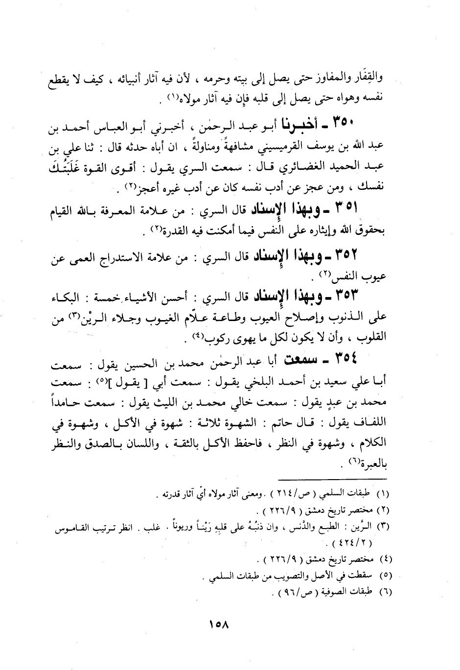 352 - وَبِهَذَا الْإِسْنَادِ قَالَ السَّرِيُّ: §«مِنْ عَلَامَةِ الِاسْتِدْرَاجِ الْعَمَى عَنْ عُيُوبِ النَّفْسِ»