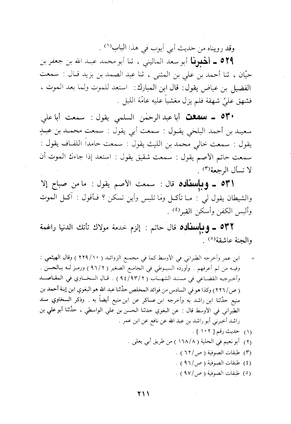 530 - سَمِعْتُ أَبَا عَبْدِ الرَّحْمَنِ السُّلَمِيَّ يَقُولُ سَمِعْتُ أَبَا عَلِيٍّ سَعِيدَ بْنَ أَحْمَدَ الْبَلْخِيَّ يَقُولُ: سَمِعْتُ أَبِي يَقُولُ: سَمِعْتُ مُحَمَّدَ بْنَ حَاتِمٍ الْأَصَمَّ يَقُولُ: سَمِعْتُ شَقِيقًا يَقُولُ: §«اسْتَعِدَّ إِذَا جَاءَكَ الْمَوْتُ أَنْ لَا تَسْأَلَ الرَّجْعَةَ»