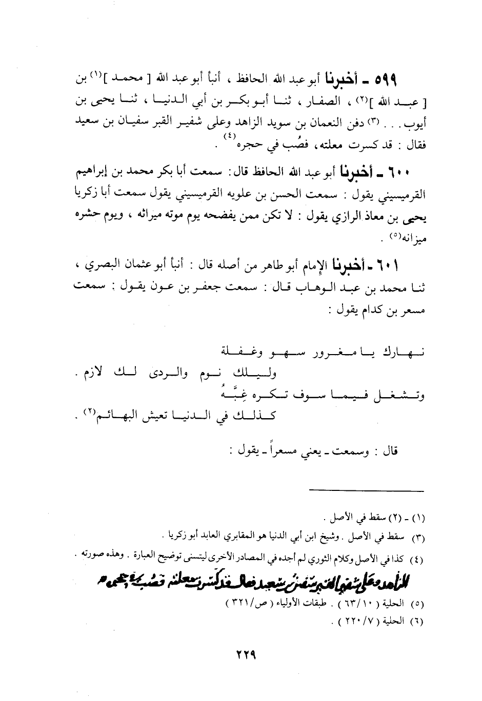 601 - أَخْبَرَنَا الْإِمَامُ أَبُو طَاهِرٍ مِنْ أَصْلِهِ قَالَ: أَنْبَأَنَا أَبُو عُثْمَانَ الْبَصْرِيُّ، ثنا مُحَمَّدُ بْنُ عَبْدِ الْوَهَّابِ قَالَ: سَمِعْتُ جَعْفَرَ بْنَ عَوْنٍ يَقُولُ: سَمِعْتُ مِسْعَرَ بْنَ كِدَامٍ يَقُولُ: