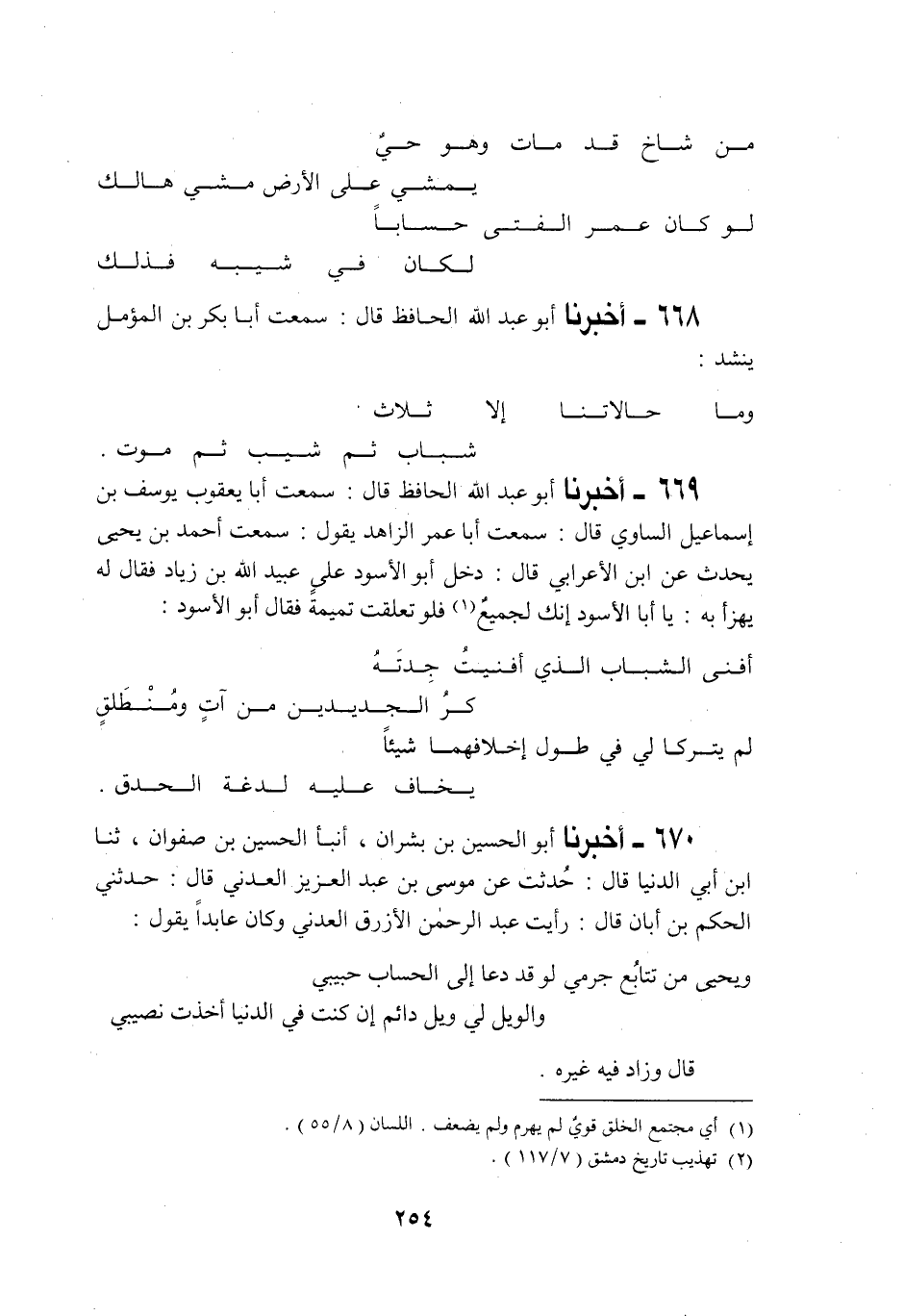 668 - أَخْبَرَنَا أَبُو عَبْدِ اللَّهِ الْحَافِظُ قَالَ: سَمِعْتُ أَبَا بَكْرِ بْنَ الْمُؤَمَّلِ يُنْشِدُ: «