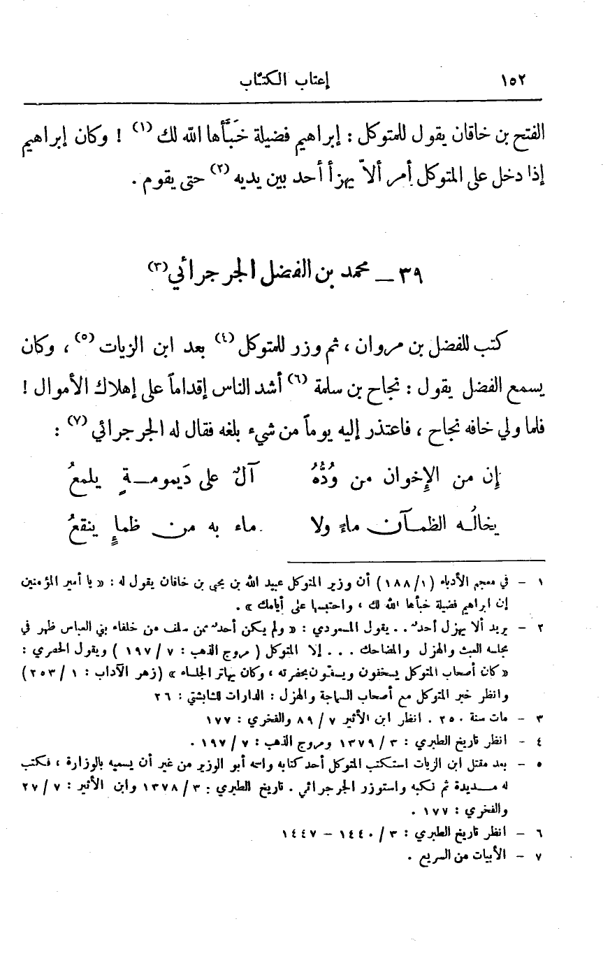 الفتح بن خاقان يقول للمتوكل: إبراهيم فضيلة خبأها الله لك! وكان إبراهيم إذا دخل على المتوكل أمر ألا يهزأ أحد بين يديه حتى يقوم.