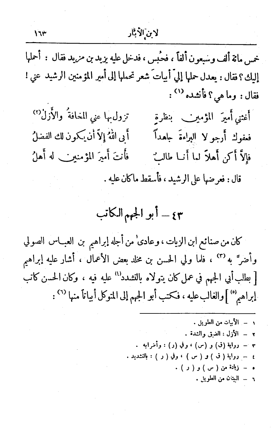 خمس مائة ألف وسبعون ألفاً، فحبس، فدخل عليه يزيد بن مزيد فقال: أحملها إليك؟ فقال: يعدل حملها إلي أبيات شعر تحملها إلى أمير المؤمنين الرشيد عني! فقال: وما هي؟ فأنشده: