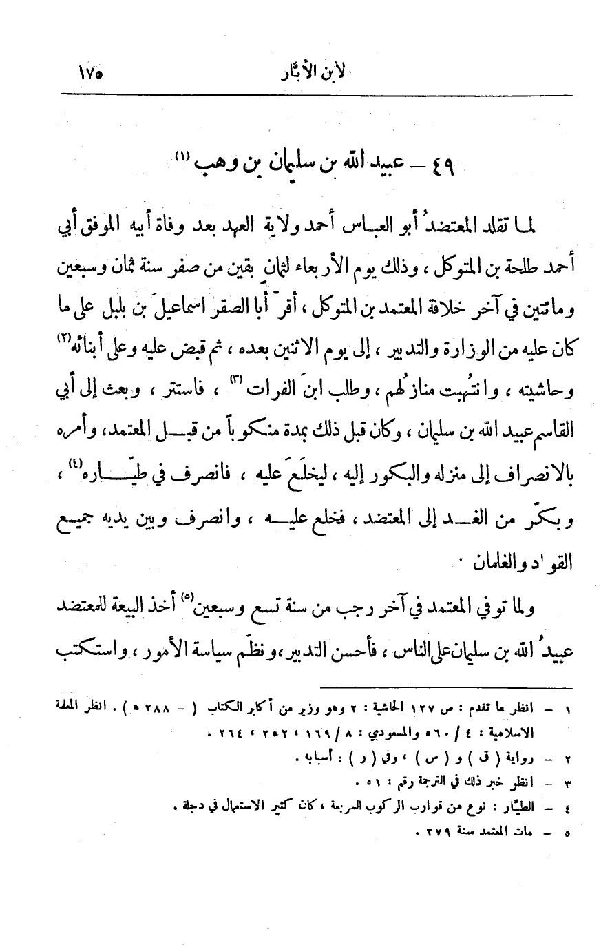 ولما توفي المعتمد في آخر رجب من سنة تسع وسبعين أخذ البيعة للمعتضد عبيد الله بن سليمان على الناس، فأحسن التدبير، ونظم سياسة الأمور، واستكتب