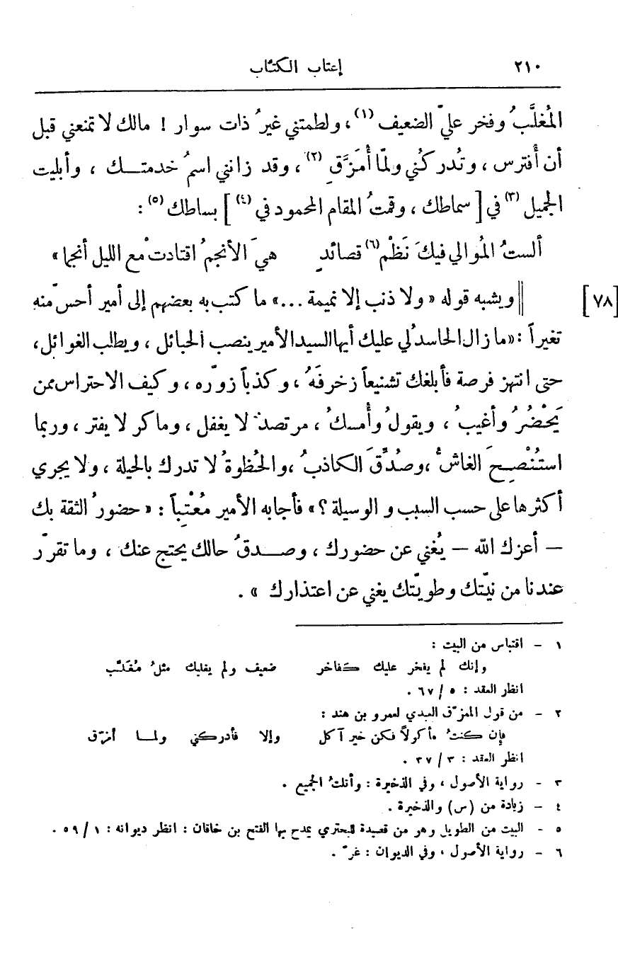 المغلب وفخر علي الضعيف، ولطمتني غير ذات سوار! مالك لا تمنعني قبل أن أُفترس، وتدركني ولما أُمزق، وقد زانني اسم خدمتك، وأبليت الجميل في سماطك، وقمت المقام المحمود في بساطك: