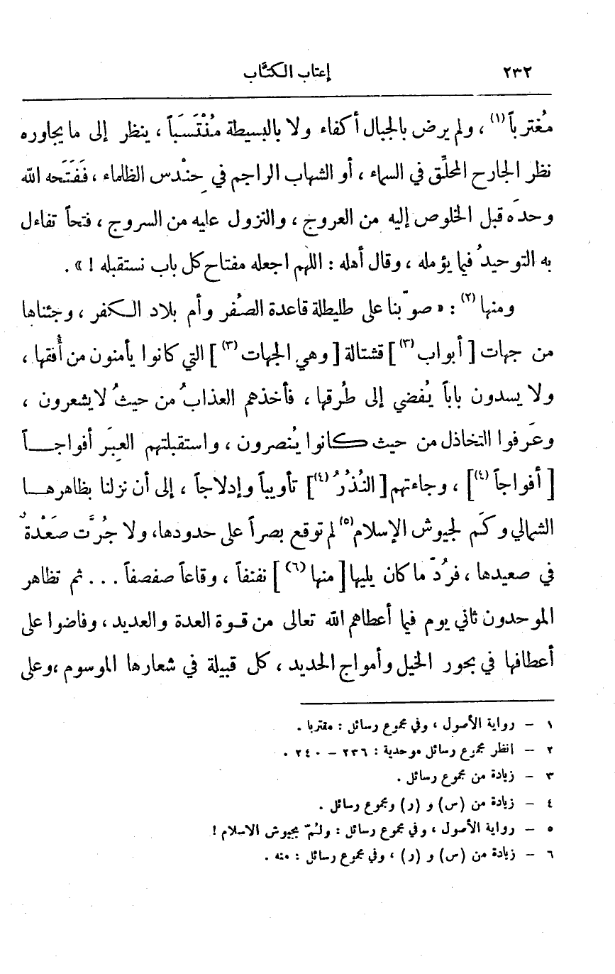 مغترباً، ولم يرض بالجبال أكفاء ولا بالبسيطة منتسباً، ينظر إلى ما يجاوره نظر الجارح المحلق في السماء، أو الشهاب الراجم في حندس الظلماء، ففتحه الله وحده قبل الخلوص إليه من العروج، والنزول عليه من السروج، فتحاً تفاءل به التوحيد فيما يؤمله، وقال أهله: اللهم اجعله مفتاح كل باب نستقبله!.
