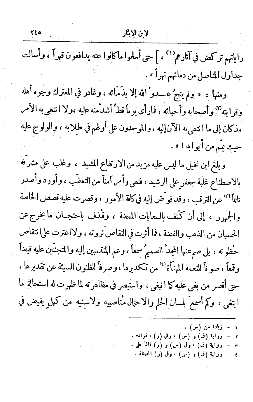 وبلغ ابن نخيل ما ليس عليه مزيد من الارتفاع المشيد، وغلب على مشرفه بالاصطناع غلبة جعفر على الرشيد، فنهى وأمر آمناً من التعقب، وأورد وأصدر نائماً عن الترقب، وقد فوض إليه في كافة الأمور، وقصرت عليه قصص الخاصة والجمهور، إلى أن كنف بالسعايات الممضة، وقذف باحتجان ما يخرج عن الحسبان من الذهب والفضة، فما أثرت في التقاص ثروته، ولا اعترت على انتقاص حظوته، بل صم عنها المجد الصميم سمعاً، وعم المنتسبين إليه والمتجنين عليه قبضاً وقمعاً، صوناً للنعمة المهنأة من تكديرها، وصرفاً للظنون السيئة عن تقديرها، حتى أقصر من بغى عليه كما انبغى، واستبصر في مظاهرته لما ظهرت له استحالة ما ابتغى، وكم أسمع بلسان الحلم والاحتمال مناصبيه ولا سنيه من كهل يفيض في