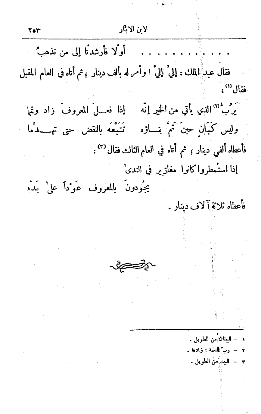 فقال عبد الملك: إلي إلي! وأمر له بألف دينار؛ ثم أتاه في العام المقبل فقال: