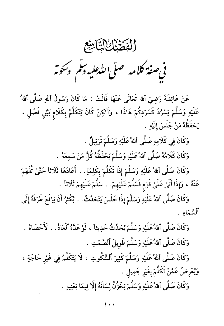 الفصل التّاسع في صفة كلامه صلّى الله عليه وسلّم وسكوته