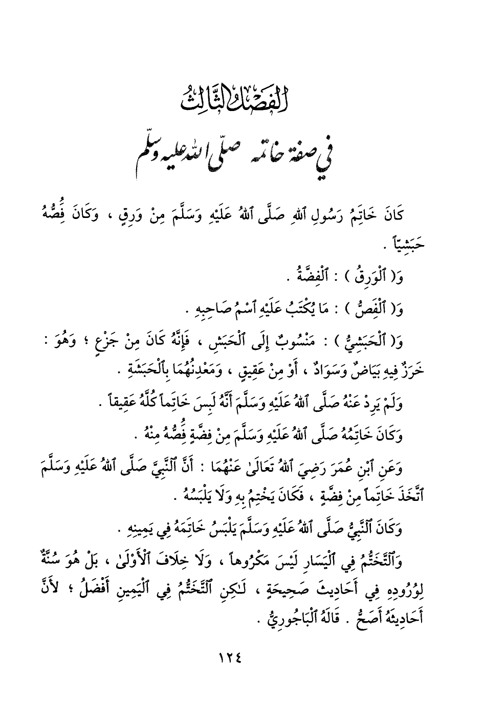 الفصل الثّالث في صفة خاتمه صلّى الله عليه وسلّم
