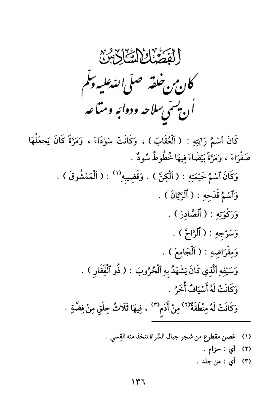 الفصل السّادس كان من خلقه صلّى الله عليه وسلّم أن يسمّي سلاحه ودوابّه ومتاعه