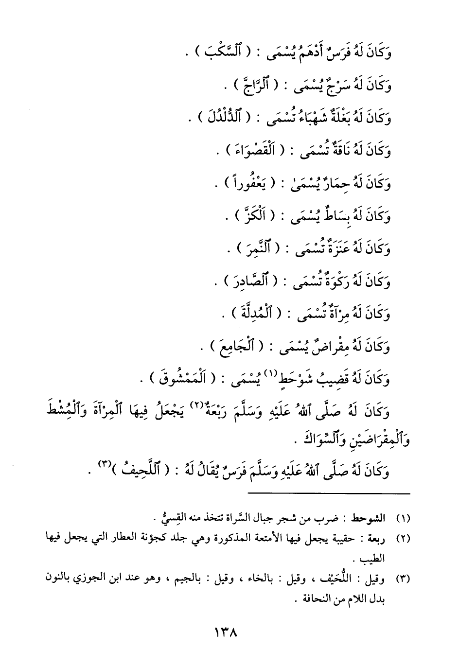 وكان له ناقة تسمى: (القصواء) .