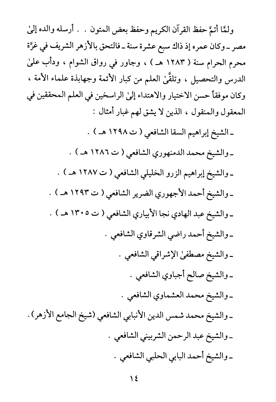 والشيخ أحمد راضي الشرقاوي الشافعي.